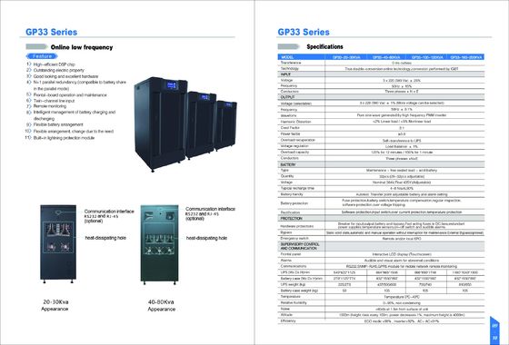 | A série GP33 é a conversão dobro em linha UPS, com os transistor bipolares isolados da porta (IGBT) que executa a conversão excelente da saída do sinewave do inversor de alta frequência de PWM. A série é applicalbe aos pequenos e médios centros de dados, centro da gestão de rede, salas de computador para empresas, e capaz de fornecer soluções às condições como o declive da tensão ou o abalo instantâneo, do pulso, da pulsação da tensão, da tensão de pico, do harmônico, da distorção e da frequência a flutuação de alta tensão do umedecimento, garante à fonte segura e segura do offerr de alimentação para todas as cargas aos usuários. |